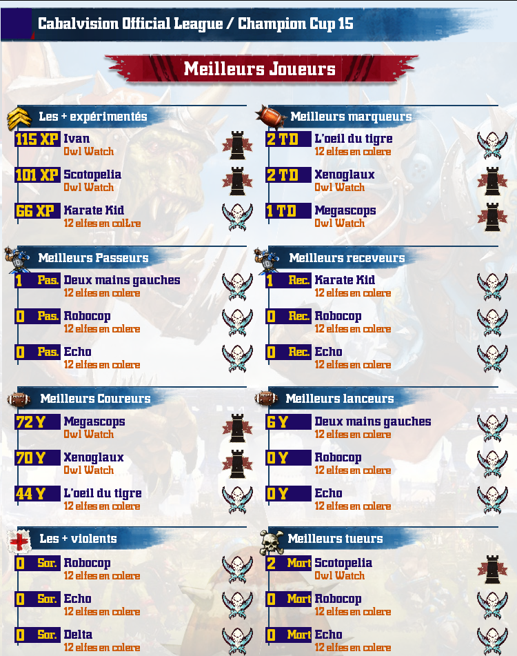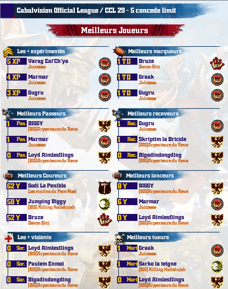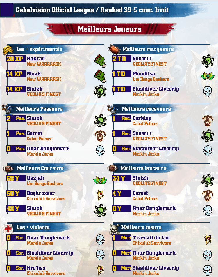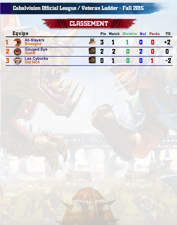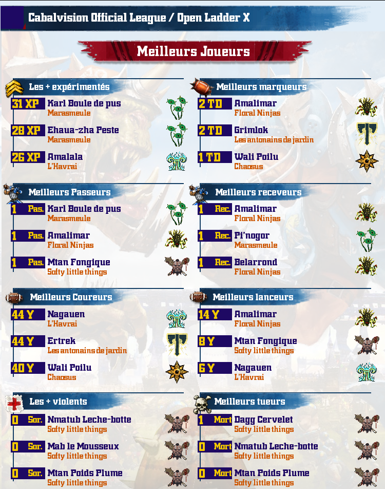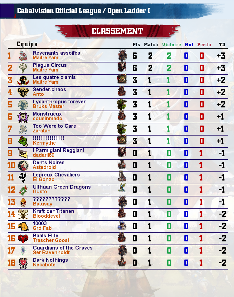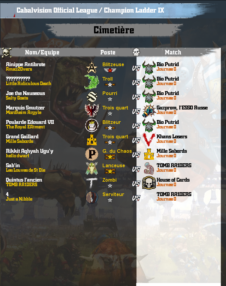 Join the Open Ladder for your quick fix of Blood Bowl - This is your starting place! Compete in the Champion Ladder to qualify for the Champion Cup! Please keep in mind that over 5 concessions as a coach and you're booted for the remainder that season! More info on the official forum.