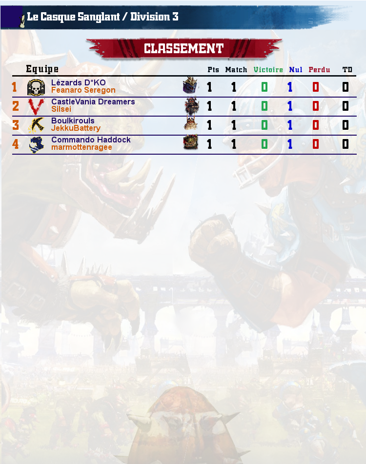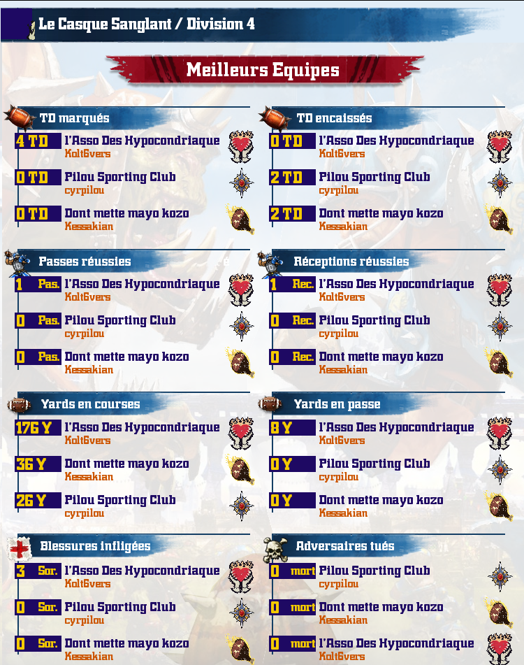 Communauté des joueurs francophones jouant au jeu Blood Bowl 2. Organisateur de l'Open de la Ligue Française 2, Championnat du Casque Sanglant et de Coupes de Blood Bowl. Pour participer, échanger, partager de bons moments, inscrivez-vous !! www.ligue-bloodbowl.fr