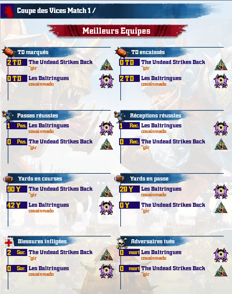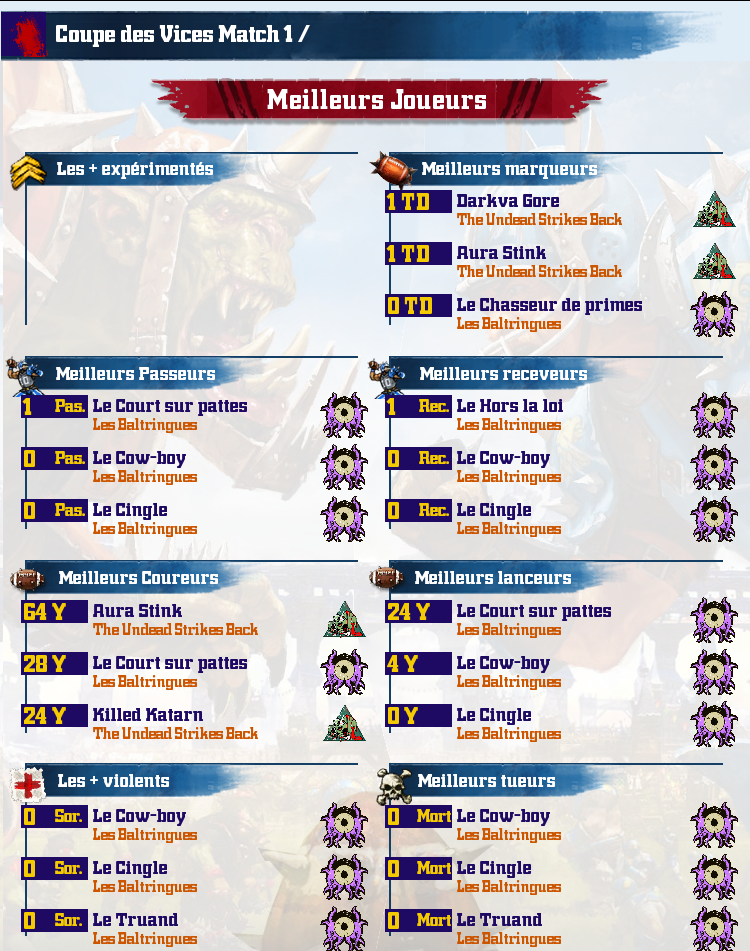 Bienvenue aux aspirant champions dans la ligue des chatteux tirés au sort les premiers ! Le maitre du donjon étant plutot elfe noir orienté slaanesh, tout les coups sont permis tant qu'ils sont en dessous de la ceinture. Surtout si ils sont en dessous de la ceinture ;). Règle spéciale de la ligue : corruprion de commissaire offerte à toute équipe sponsorisée par le Cercle de Béate Sérénité ;).