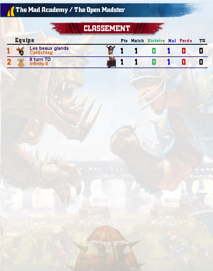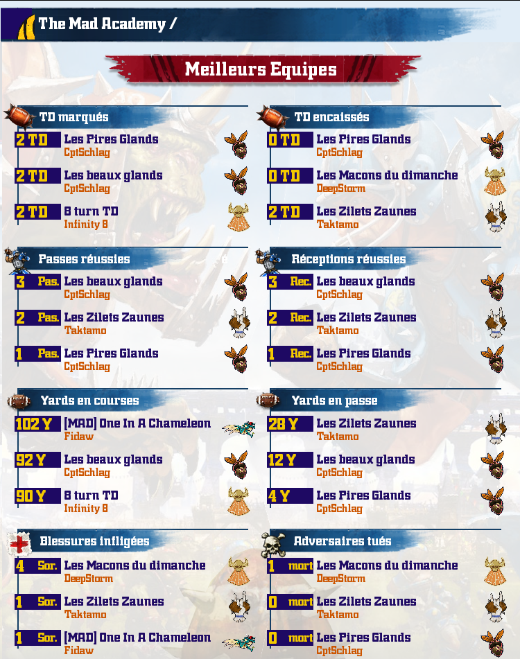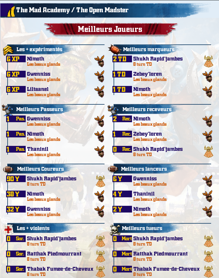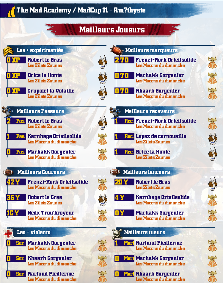 Fr & Uk // Fr :: La Mad AcademY accueille avec plaisir les joueurs débutants ou Confirmés. Compétitions et/ou Tutorats sont au programme, en fonction des envies. N'hésitez pas à jeter un oeil au forum ! A bientôt ! // UK :: The Mad Academy is glad to welcome Rookies and experienced players around competitions and/or lessons. Do Not hesitate to check the Forum. Cya around !