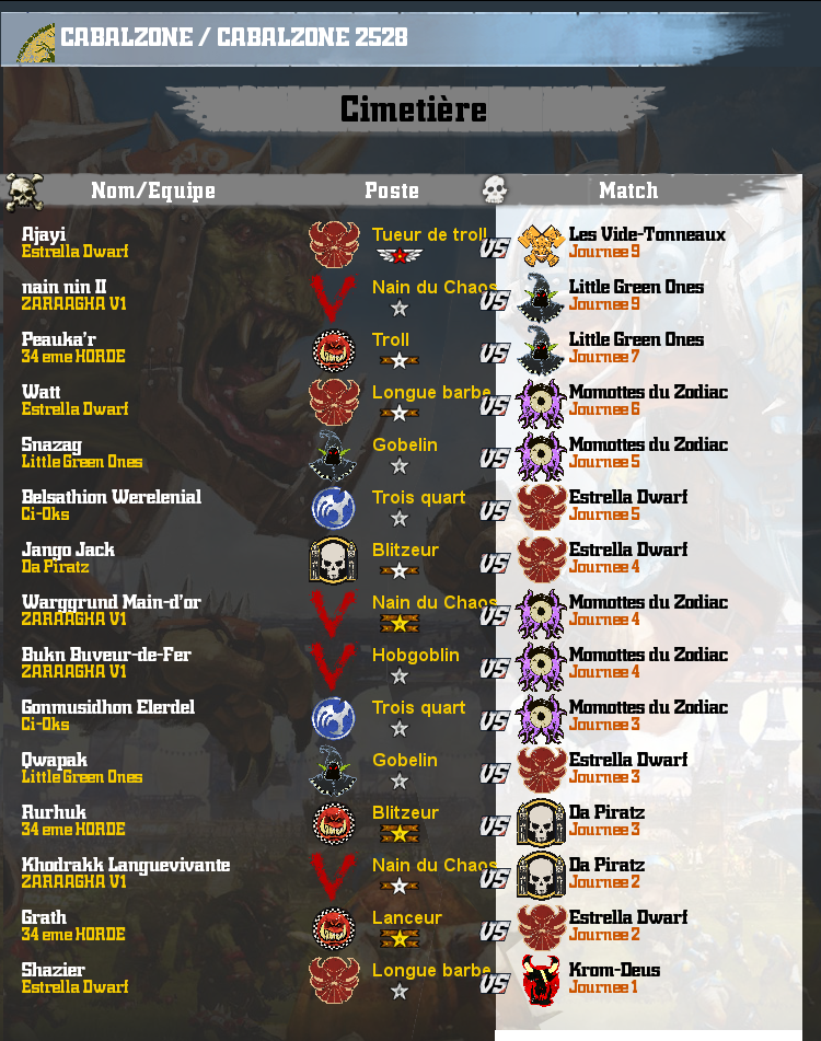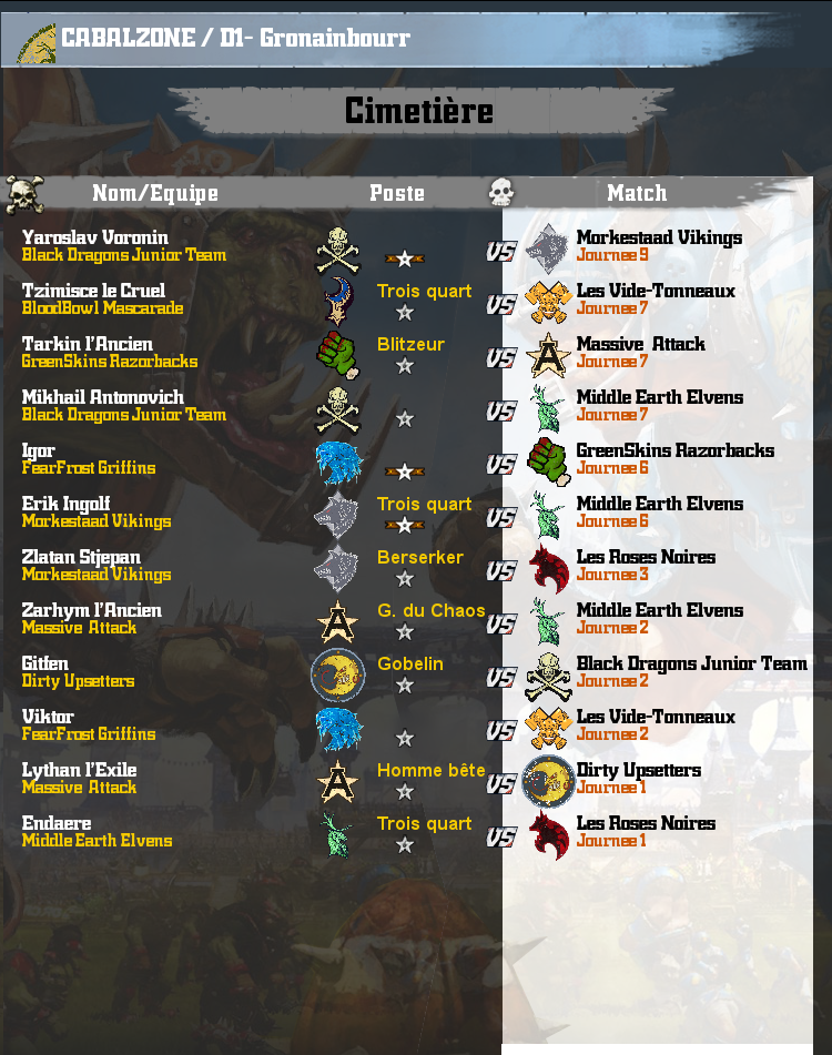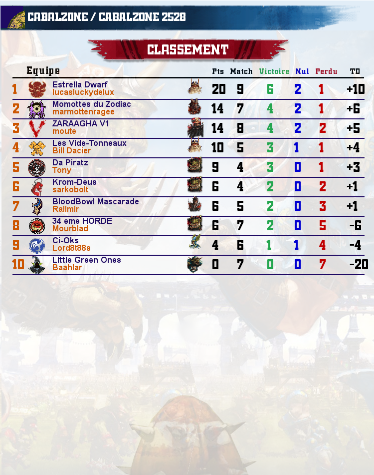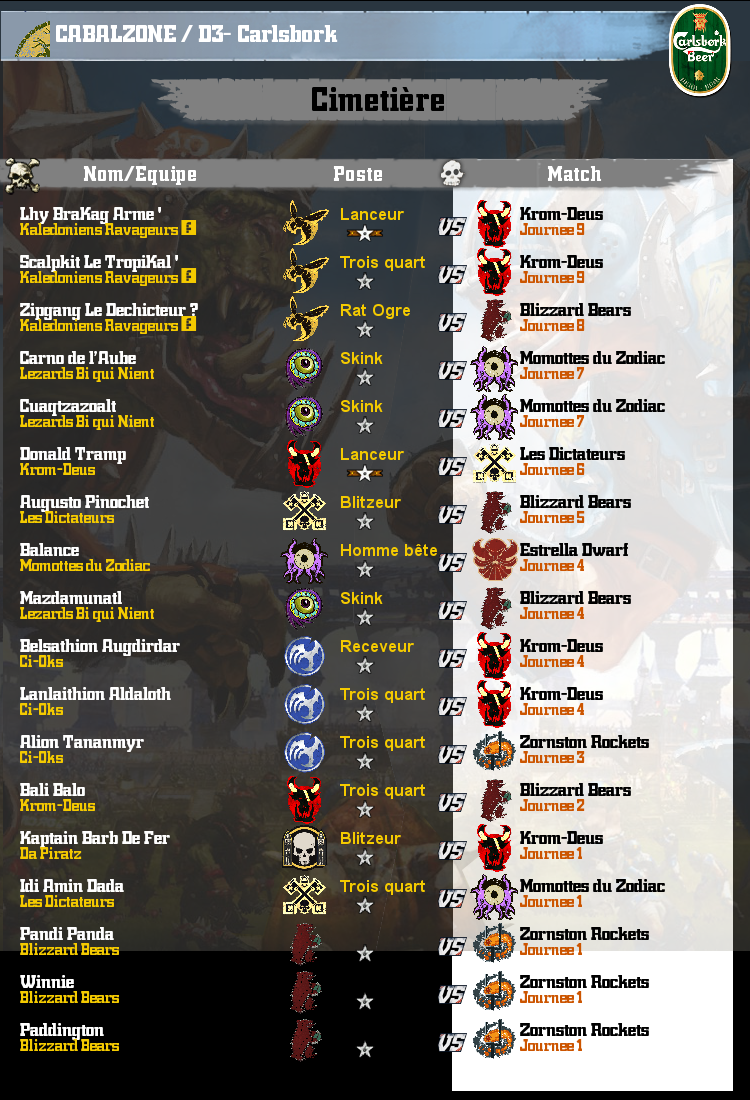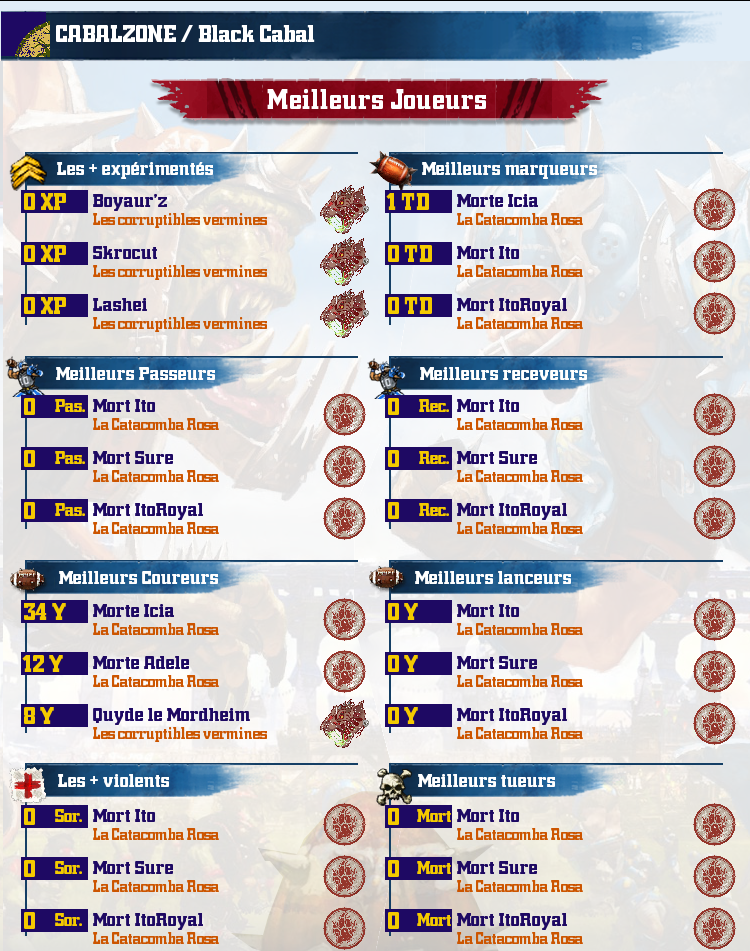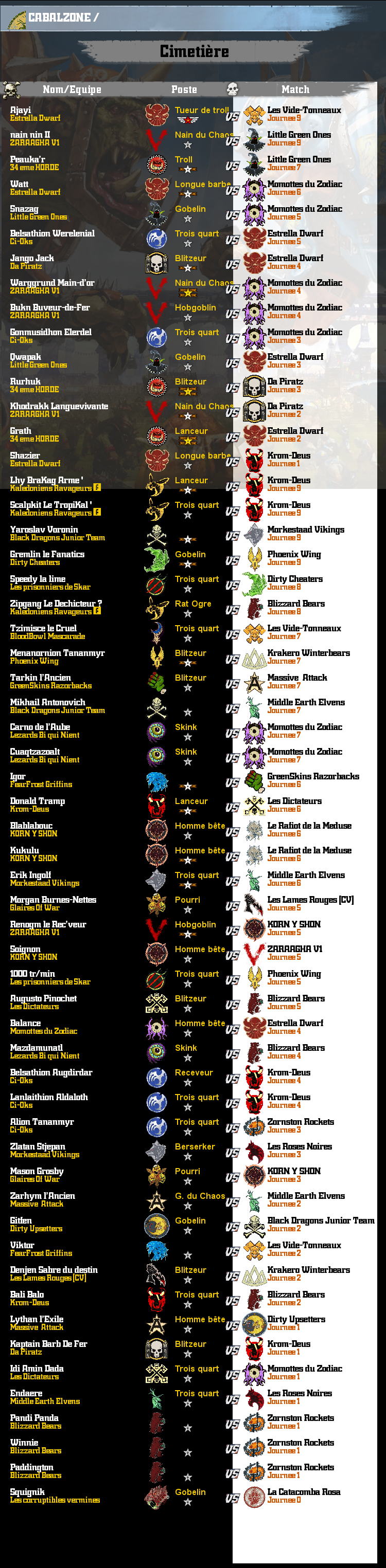 La ligue RP Cabalvision vous connaissez ? Vous pouvez nous retrouver sur notre forum : cabalvision.forumactif.com . La ligue passe en version 2 en transportant ses compétitions surla version BB2.