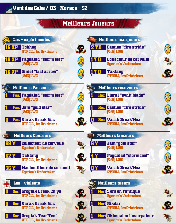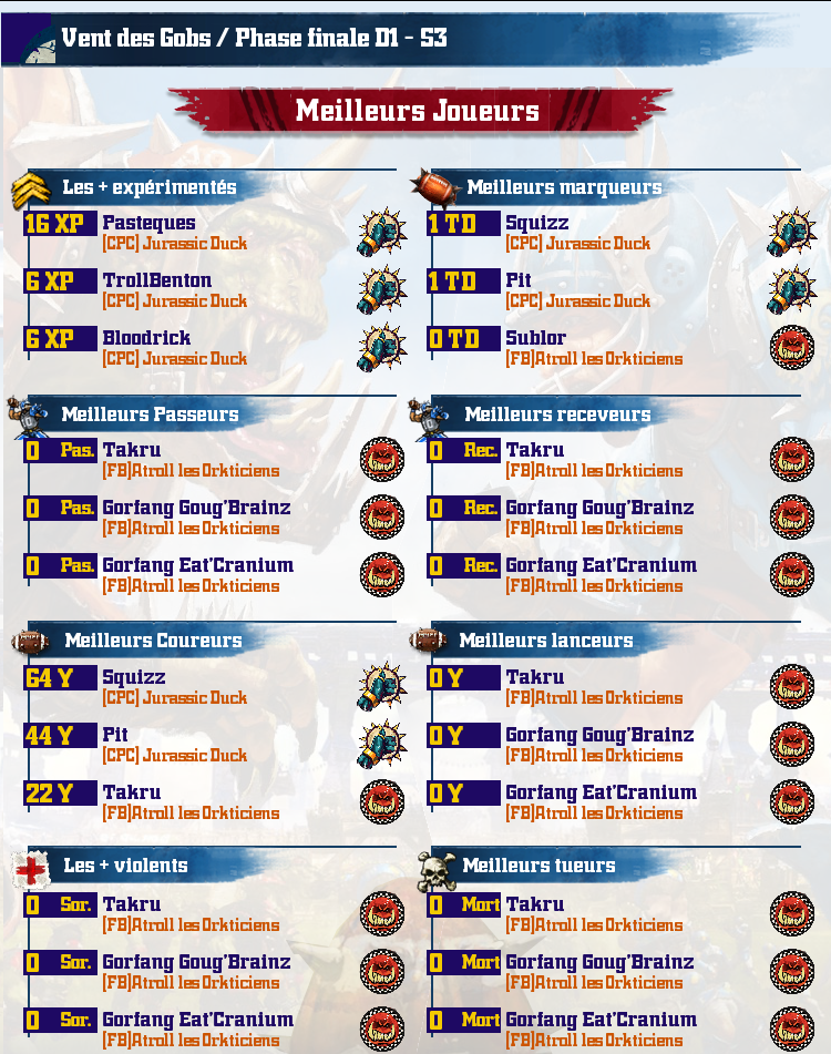 Le Vent des Gobs est un championnat perpétuel, en mode résurrection, composé de plusieurs divisions et poules, avec promotion et relégation.