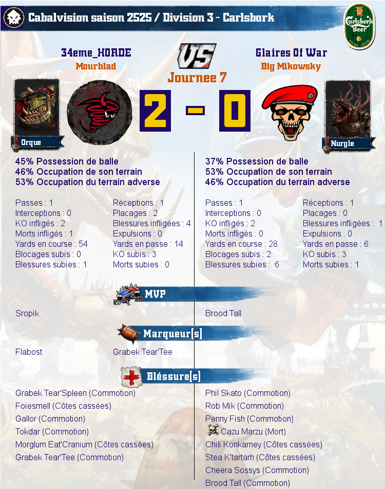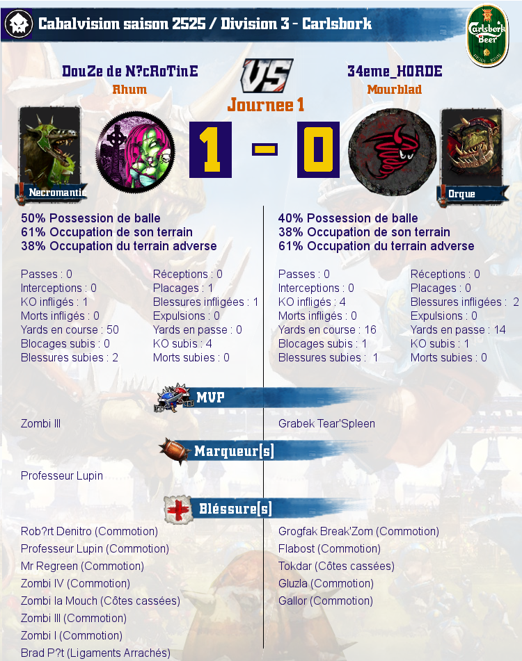 Cabalvision saison 2525 Division 3 - Carlsbork